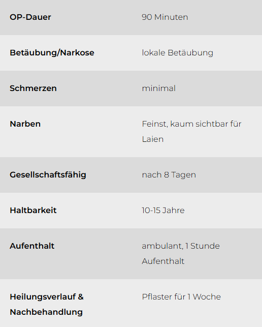 - unsichtbare Schnittführung (keine sichtbaren Narben)