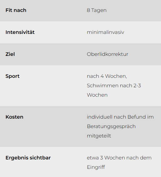 Wichtigste Infos zur Oberlidstraffung im Überblick